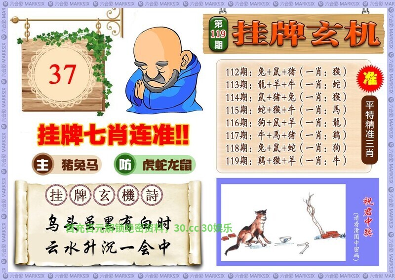111期:港彩挂牌家野中特【家禽】开:马12中