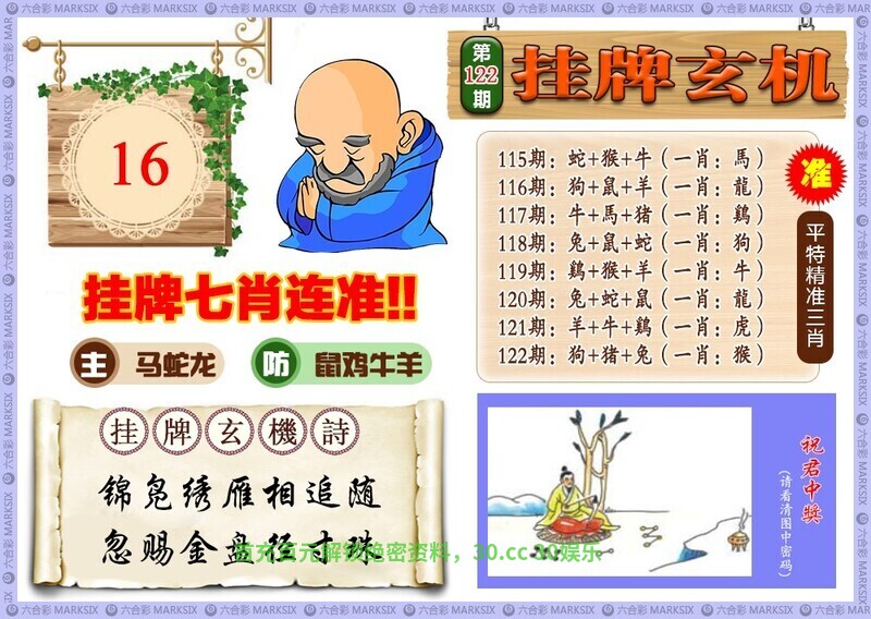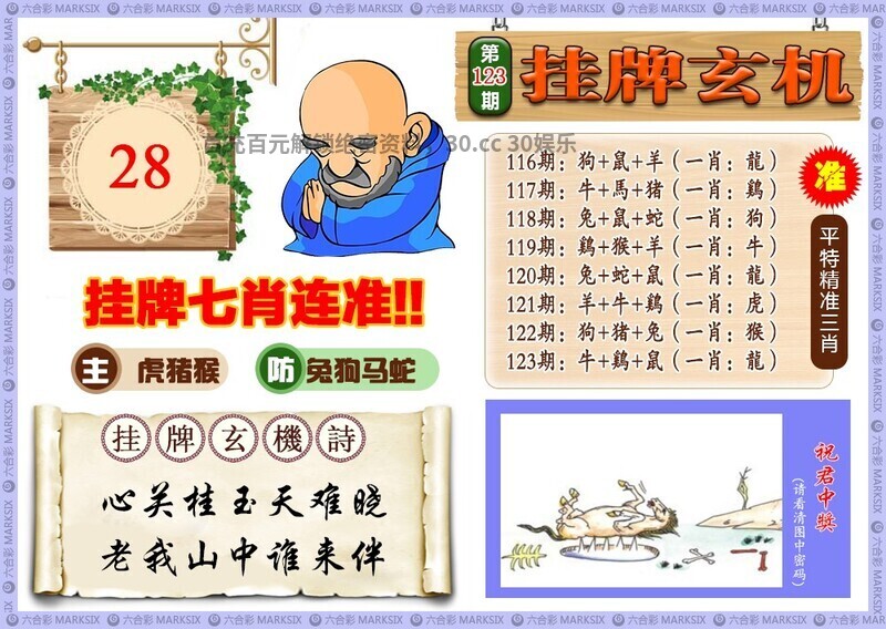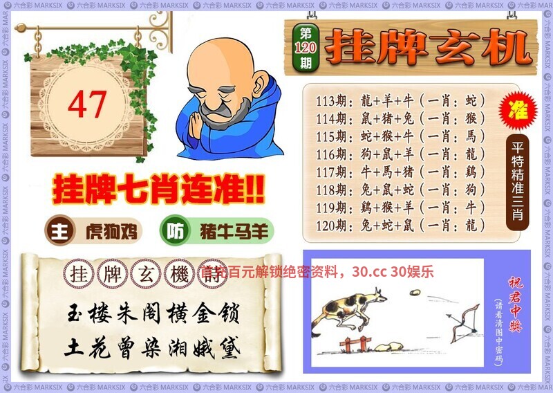123期:单(牛鸡羊蛇)双(马龙狗虎)發00中